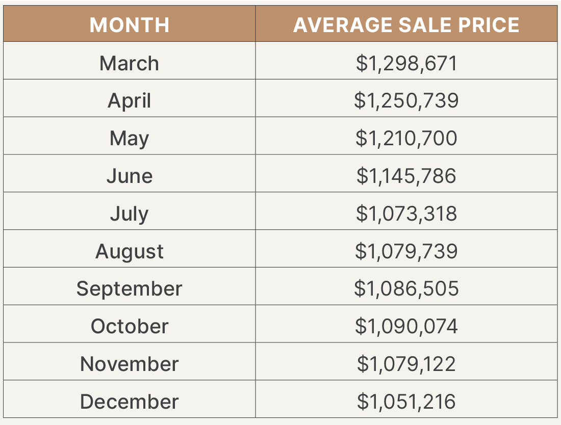 December’s sales results were more than 48 percent lower than the 6,013 properties reported sold last December. Since March the number of monthly sales has decreased by more than 70 percent. It should be noted however, December’s sales results have historically been the lowest in any year. The trajectory of average sale prices in Toronto and area has been similar to monthly sales.